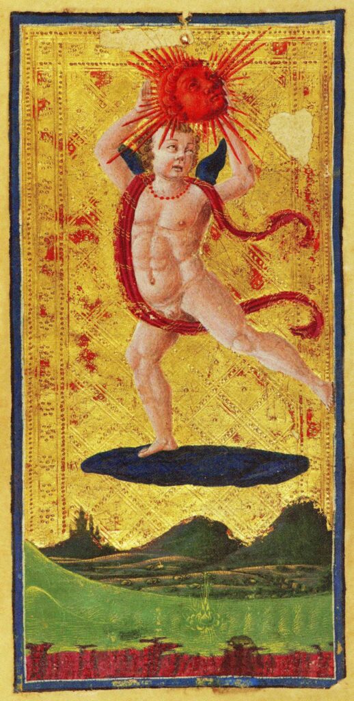 The Sun in the Tarot is the Christic state, the condition in which human awareness turns entirely toward the Divine. The Gospel image of the transfigured Christ expresses the same event: the intellect and the heart aligned with the solar will. The Christ is the eternal Sun shining through the purified mind. To “see the Father” is to let the head turn fully to the Light that was always there.
