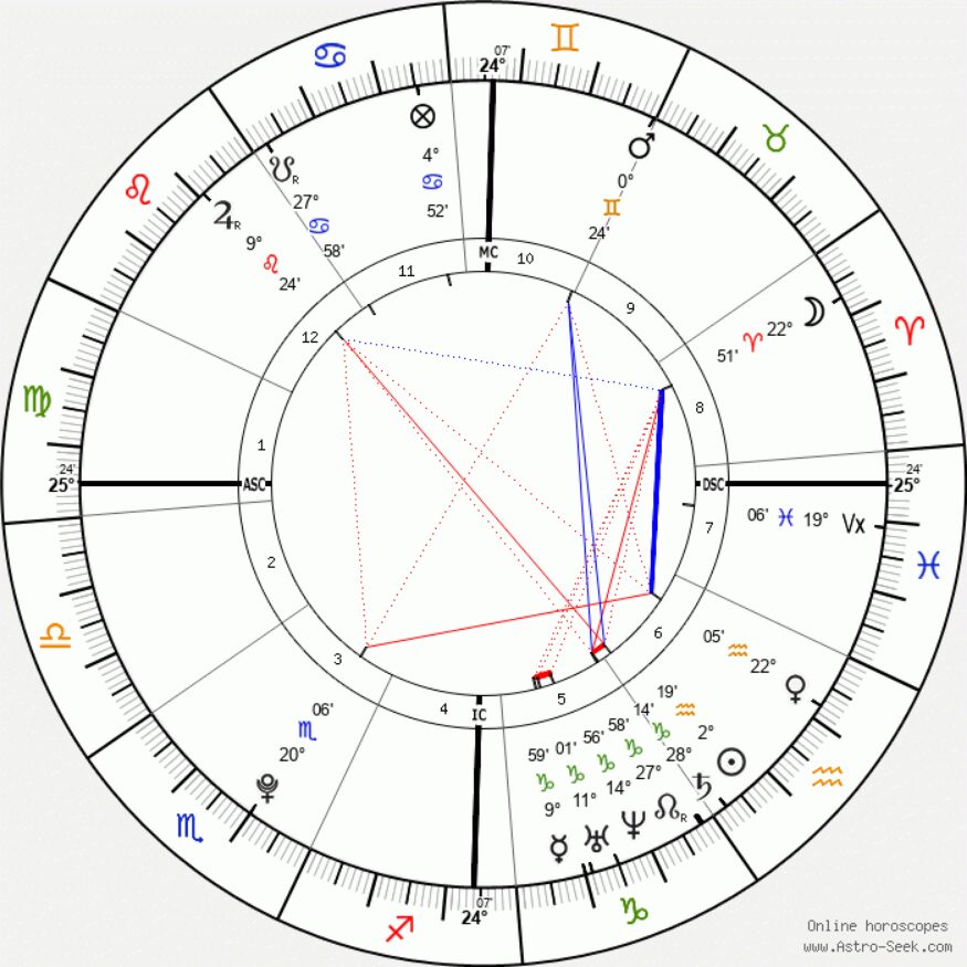 Her only applying aspect before leaving the sign is a square to Mars in Gemini in the 10th, confirming the rising tension throughout life. Mars is angular and mutable, with all the power to cut, divide, cause strife, making the conflict publicly. It must also be noted that Mars holds triplicity rulership in Pisces and, by hierarchical extension, participates as a secondary significator of relationships.