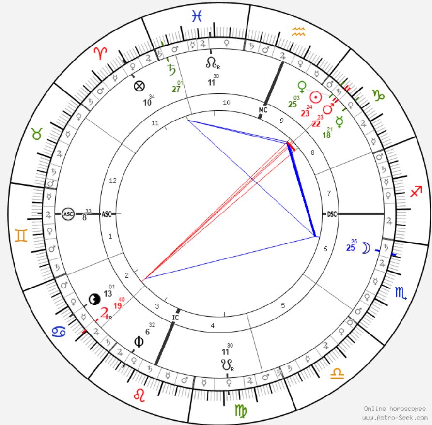 There is another significant technical detail: Mercury is also enclosed by Venus and Mars, both also combust or about to move under the beams, all of them under the Sun’s authority in Capricorn. Venus, weakened, is unable to mediate or reconcile; Mars, exalted but blinded by the Sun’s light, expressed hardness and severance. This solar and saturnine cluster in Capricorn expresses an atmosphere of constriction, in which Mercury (the lawyer) is crushed by forces of decision, authority, and conclusion.