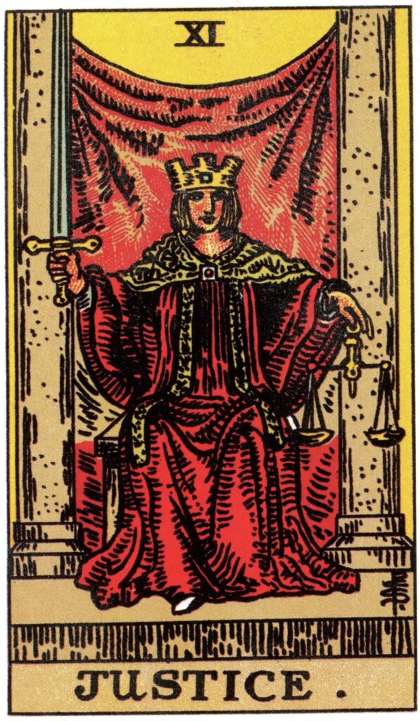 Tikkun means restoration; it is the act by which the scattered lights return to unity. For the Kabbalists, the first world shattered under the intensity of divine radiance. All creation since then has been an effort of repair. All gestures of understanding, of mercy participate in that hidden restoration. The Justice card belongs to that current. It does not speak of law in the social sense, but of cosmic equilibrium, of the act by which the soul repairs what was broken.
