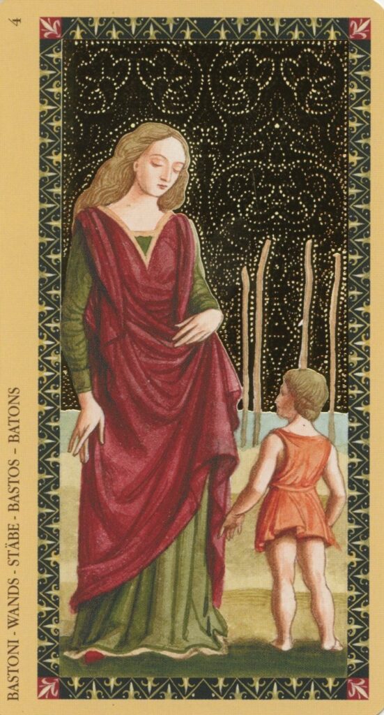On the Ascendant came the Four of Wands, which corresponds to the decan of Venus in Aries. Aries is ruled by Mars, and Venus is in detriment in Martial signs. This is because Mars and Venus represent two opposite principles. Mars separates, cuts, and divides; Venus unites, attracts, and seeks concord. Aries is ruled by Mars and is a masculine, hot, and dry sign. Venus, by contrast, is a feminine planet, cold and moist. When Venus is placed in Aries, she loses her own qualities and is forced to operate according to Martial conditions. Love, attraction, and the need for union become hardened, dry, and aggressive.